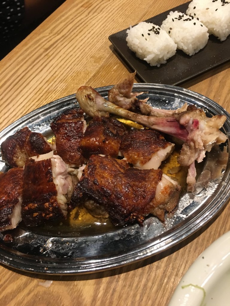 俵ごはんを鶏のジューシーな油につけて、余すところなく食べる!